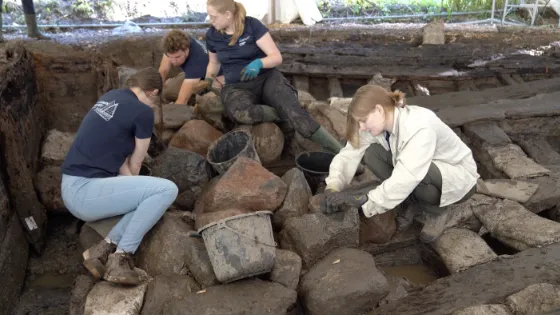 Studenten Veldschool Scheepsarcheologie Flevoland. Beeld: Yuri van Koeveringe.