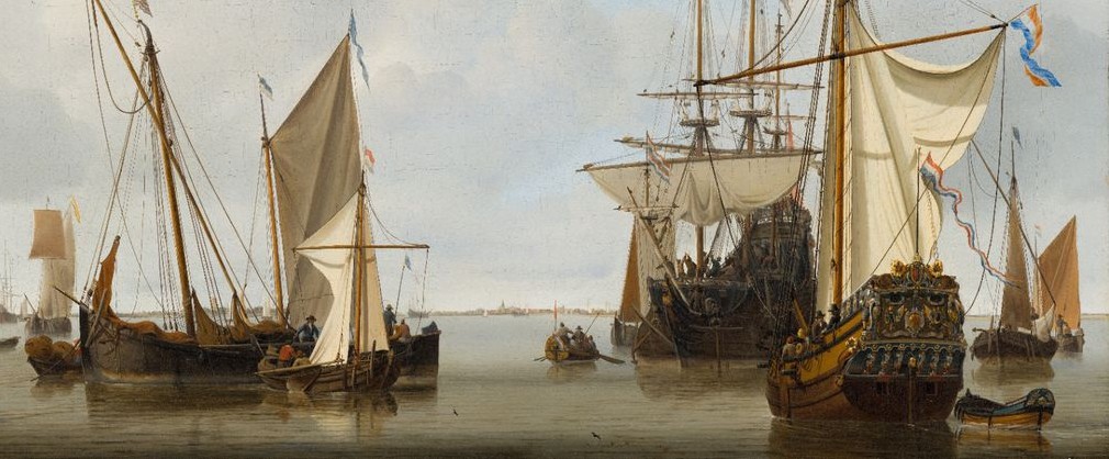 Willem van der Velde – Schepen op een kalm water (1658). Koninklijk Kabinet van Schilderijen Mauritshuis, Den Haag.