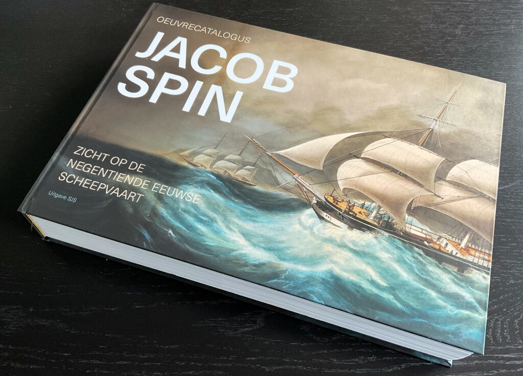 Maar hoeveel werken er nu van zijn hand bestaan, bleef lang onduidelijk. Natuurlijk, de grote maritieme musea beschikken over veel van de door Spin gemaakt aquarellen. In het Maritiem Museum Rotterdam bewaart men er 123 en in de collectie van Het Scheepvaartmuseum zelfs 135. Maar er zijn ook ‘Spinnen’ in particulier bezit. En er zijn er ook bij buitenlandse verzamelaars. Dat maakt het lastig om een totaaloverzicht samen te stellen. Toch is daarvoor een poging ondernomen en na jarenlang onderzoek heeft de Stichting Jacob Spin nu een oeuvrecatalogus van het werk van Spin gepubliceerd. Onder de bezielende leiding van voorzitter Ab Küchler stelde de Stichting zich onder andere ten doel afbeeldingen van de door Jacob Spin vervaardigde scheepsportretten bijeen te brengen en deze voor het nageslacht te bewaren. Hiervoor is de website https://jacobspin.nl/ in het leven geroepen en hierop zijn alle bekende scheepsportretten van Spin te vinden. Maar er bleek dus ook de behoefte bestaan om een boek uit te brengen met alle bekende werken van Spin daarin afgebeeld en beschreven. Na dertien jaar onderzoek werd het boek onder de titel Zicht op de negentiende-eeuwse scheepvaart op zaterdag 18 oktober 2025 gepresenteerd in de Admiraliteitskamer van Het Scheepvaartmuseum in Amsterdam, op een steenworp afstand van de plek waar Jacob Spin is geboren.